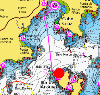 Esta etapa fue la típica de un día veraniego tranquilo: sol, calor, y poco viento, navegando casi todo el rato a motor, con llegada a vela. Atracar en Sanxenxo no tiene ninguna complicación, aunque nos tocó una plaza cerca de la playa que con marea baja calaba poco más de 2 metros (como pudimos ver en nuestra sonda), pero no tuvimos ningún problema.