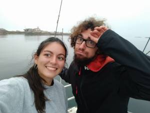 Mar de fondo, poco viento, mala visibilidad, niebla que calaba, mal vestidos para la meteorología y con pocas ganas de meternos dentro de la cabina para cambiarnos (la amenaza de mareo suele acechar en estas situaciones)… y a algún pescador también tuvimos que esquivar, con la inseguridad de no saber muy bien dónde a cuanta distancia estaban sus artes de pescada desplegadas. Pero llegamos y la recompensa mereció la pena.
