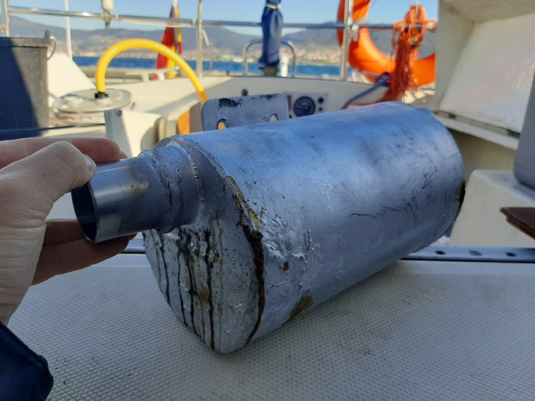 - ¿La sorpresa? 2 poritos en la sentina que sólo podían indicar una cosa…había que levantar el barco. Es por ello por lo que la varada, se tuvo que alargar para llevar a cabo una reparación de cierto calibre tanto en la parte más a popa de la orza. Los trabajadores del varadero se encontraron con un agujero por el que cabía media navaja de un tamaño estándar. ¿El origen? Una reparación previa de la que no teníamos constancia.